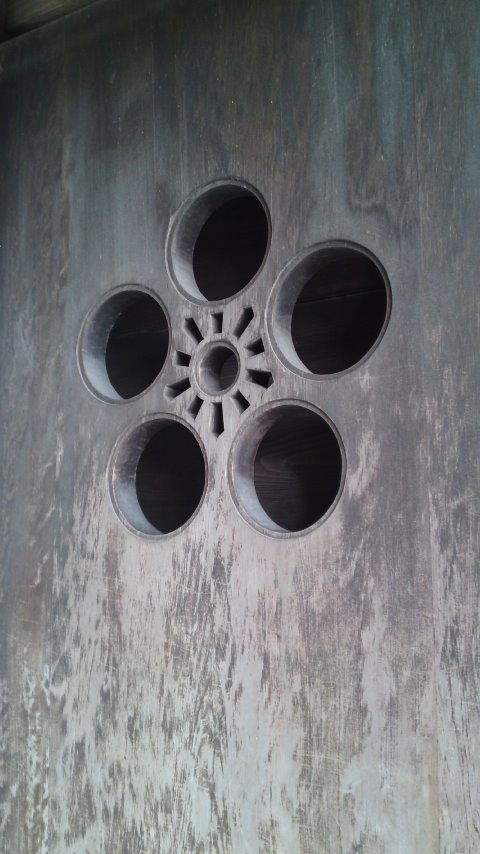 という歌にちなんで、境内には紅白の梅の花が植えられているほか、紋様も梅模様。