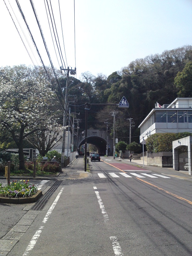 市役所前からゆるやかな坂をのぼり、御成トンネルを抜けると、