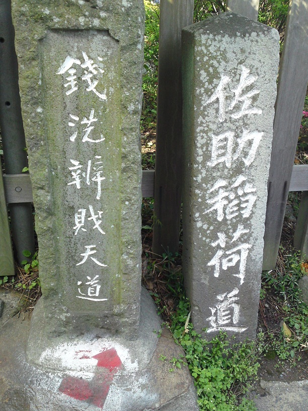 右側に佐助稲荷道、左側に銭洗弁財天道とありますが、