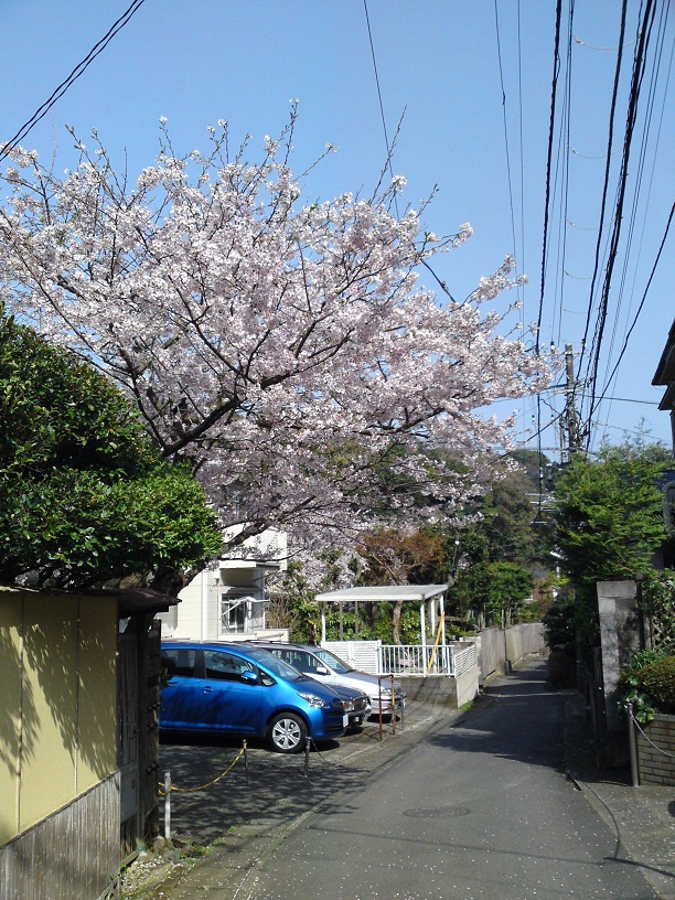 坂をくだって行くと、正面に綺麗に山桜が咲いていました。