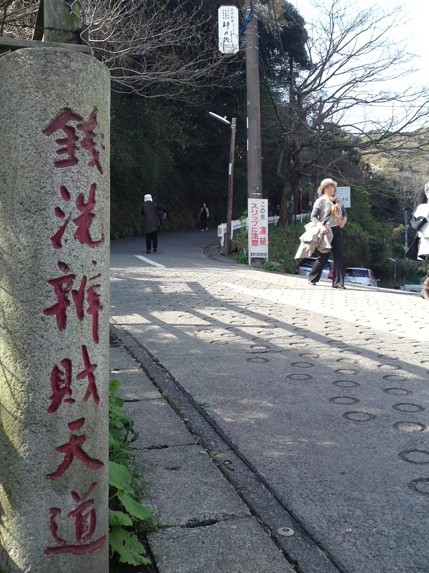 さきほどの道しるべまでもどり、今度は銭洗弁天に向かいます。