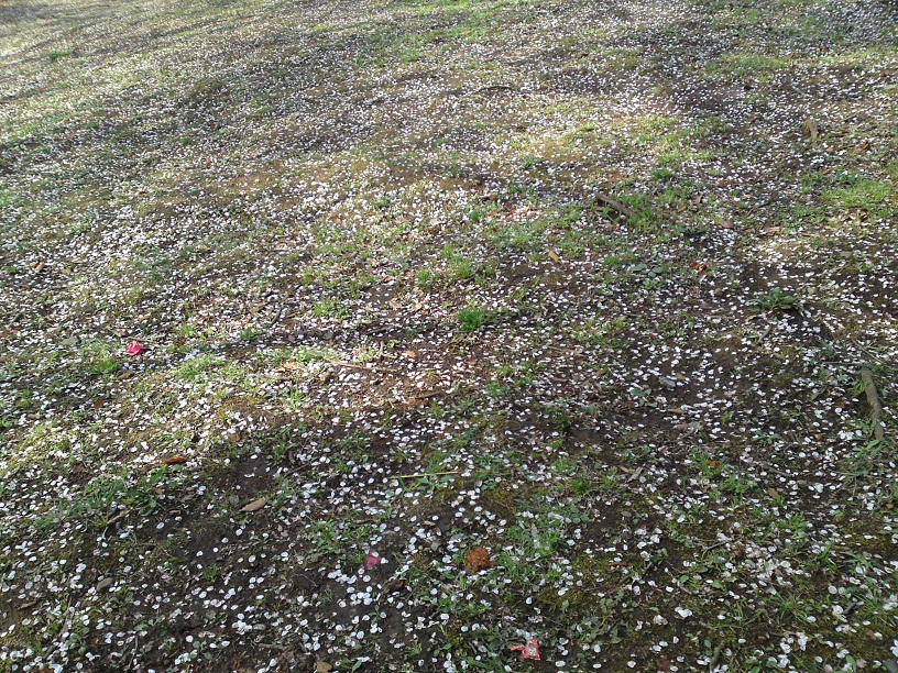 道路に桜の花びらが散っているのも、また良いものですね。