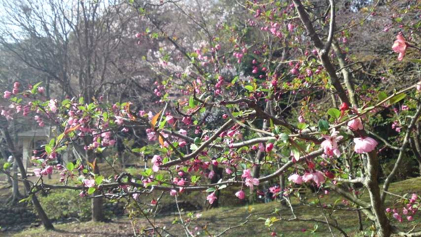 梅に桜に桃に椿と、花がたくさん咲いています。