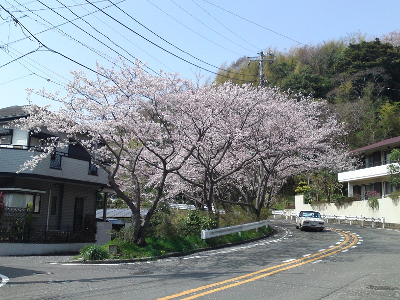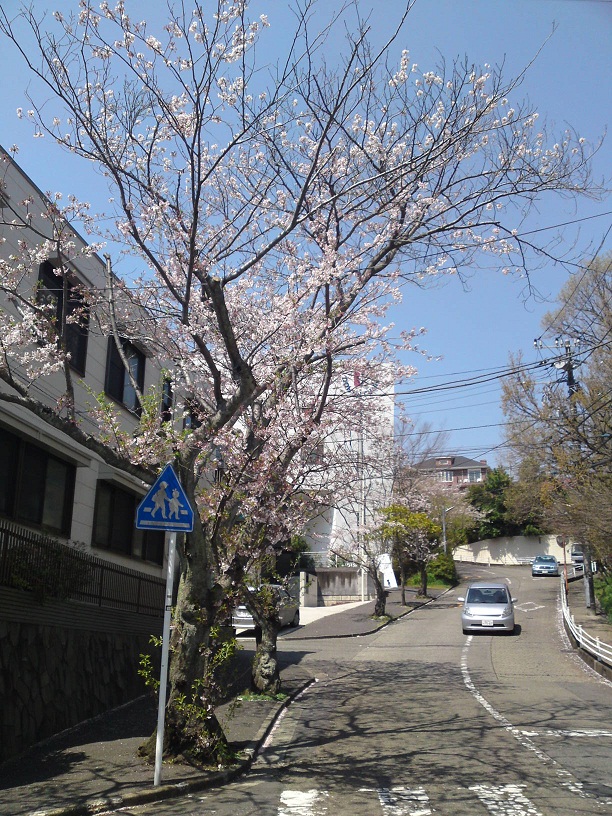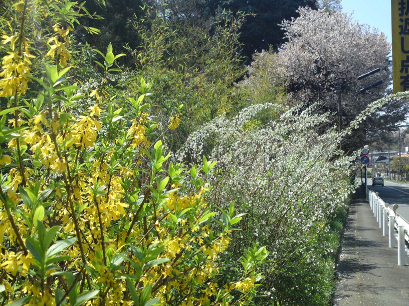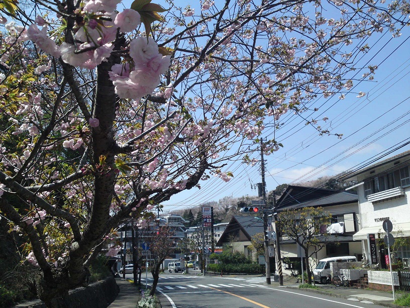 道端に桜が咲いていました。