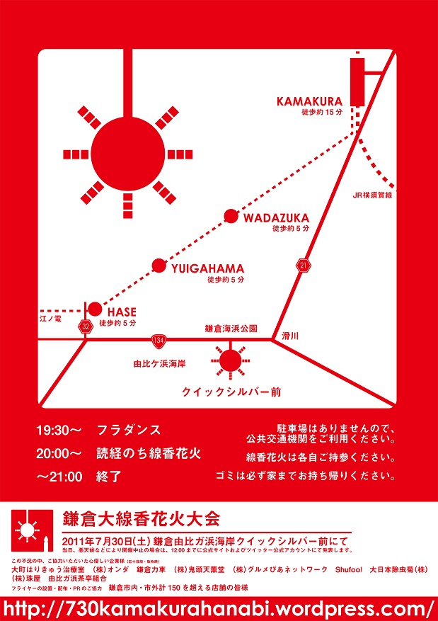 鎌倉大線香花火大会のちらしを、実行委員のみなさんと配りました。
