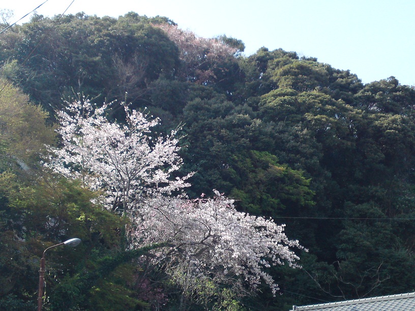 坂をくだって行くと、正面に綺麗に山桜が咲いていました。